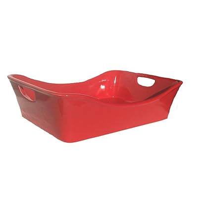 Sollazzo, Baking Pan, Red Stoneware, 2.5 QT Pan Large, Perfect for Parties and the Holidays Service. is best for youThis sturdy rectangular stoneware baking dish is a versatile piece that's perfect for a one-dish meal or a batch of extra-gooey brownies. durable stoneware construction features bold color and distinctive flared edges to add pizzazz to every kitchen glazed interior is nonporous so foods won't react wide handles are comfortable to grasp and flare up and out to make it easy to transfer dishes from oven to table microwave and freezer safe oven safe to 500°F Stoneware. Measures 7½x12¼'. Dishwasher safe. Imported.