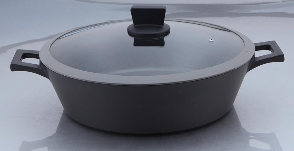 Uniware Top Quality Best Germany 3 Layer Non-stick Casting Aluminum Low Casserole Pot, with Glass Lid, Meets FDA standard, Soft Touch Knob, Induction Compatible Bottom, (14 Inch) best Bakers & Casseroles