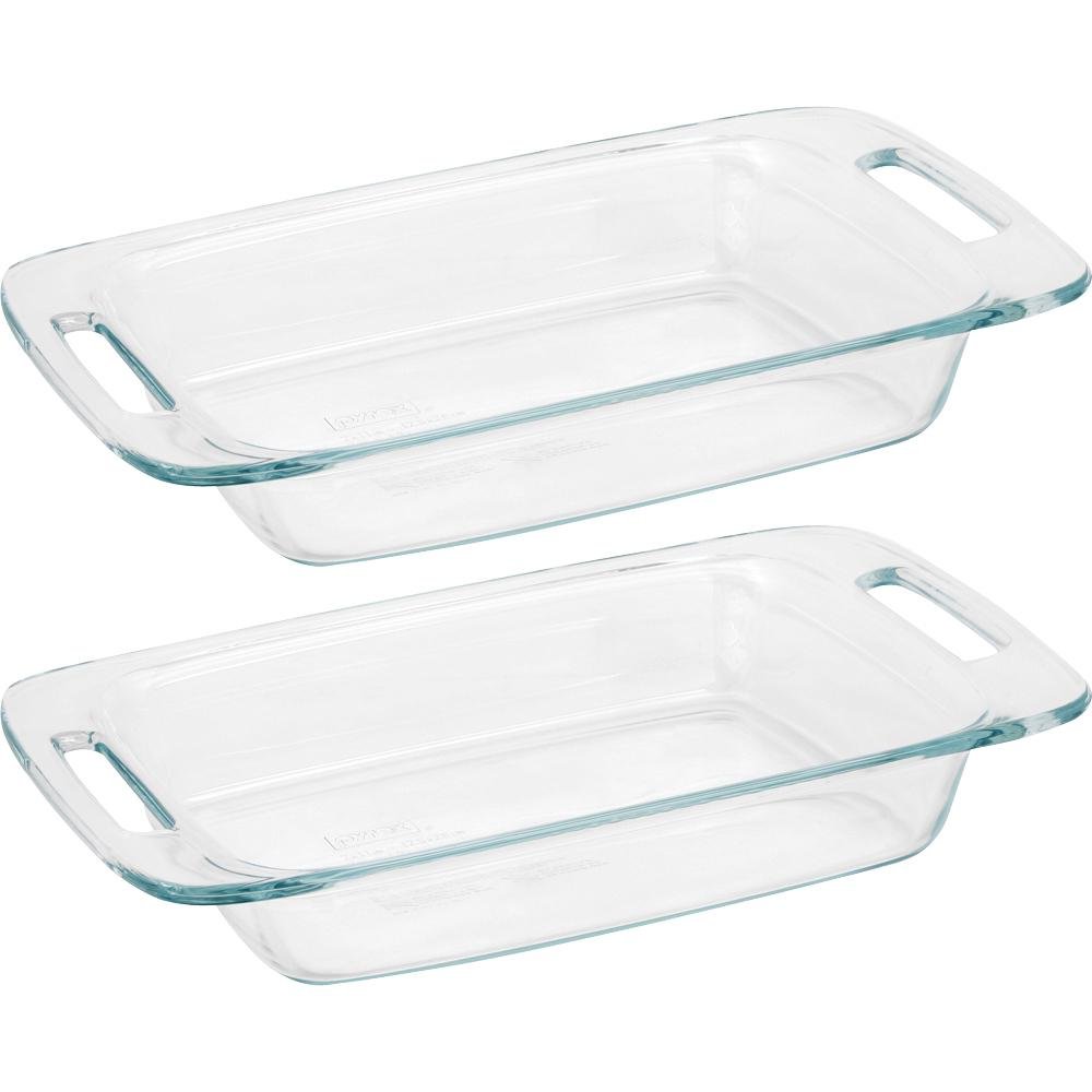 • The Pyrex Easy Grab 2-Piece Oblong Glass Bakeware Dishes is a